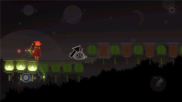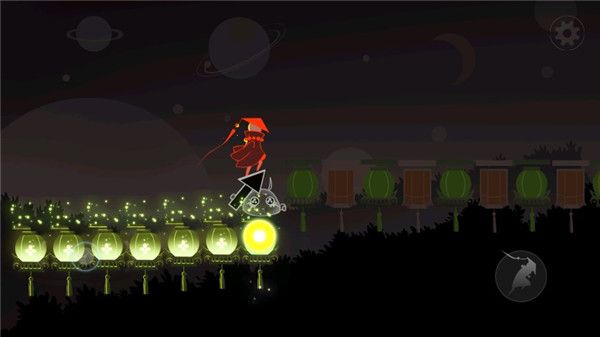5、点击右侧人形图标进行跳跃,点亮所有灯笼到达终点完成关卡。