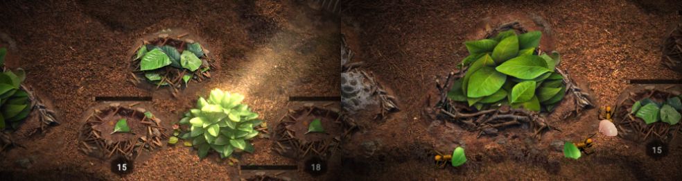 2、玩家需要管理自己的蚂蚁殖民地,在地底挖掘巢穴,建造隧道和房间来存储食物以及繁殖后代。在地表,蚂蚁们宣称领土收集资源,战胜可怕的蜘蛛,击败其它蚁类殖民地。