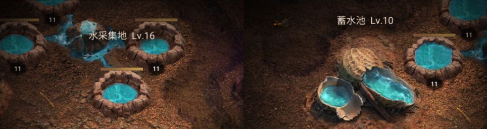 蓄水池:储存水的仓库,水生产出来后,工蚁会搬运到仓库储存;随着建筑等级的提高,储存容纳上限就会越高,水资源不断的供给才能维持蚁群数量的稳定
