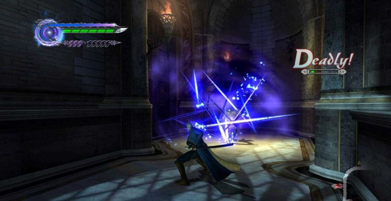 维吉尔的佩刀是斯巴达的另一个遗物"阎魔刀",此刀锋利十足,杀恶魔如削纸,甚至能够切割空间。