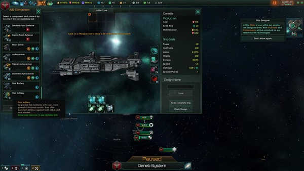 所有的帝国飞船都可以在这里射击,新的船只类型以及组件都需要通过科技研究才能够获取。