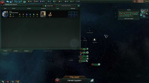 打开"帝国的星球与部门界面"就可以对星球、领袖以及帝国中的派系进行管理。