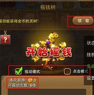摇钱树获得金币方法是什么呢?玩家晃动手机就可以随机获得一定的数量金币。具体能摇出多少金币,还不太清楚,所以说想要获得金币的玩家每天登录游戏签到完成后,就立即打开摇钱树系统来摇动自己的手机,玩家需要注意的就是在摇动手机时候,一定要拿稳手机后在摇动。不然就悲剧了!