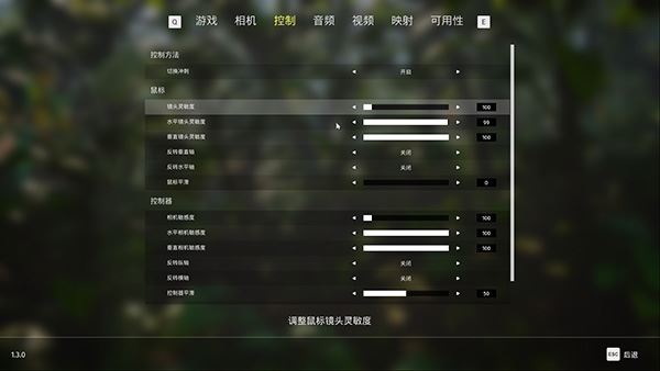 4、在控制设置一栏当中,用户可以调整好里面的镜头灵敏度、相机敏感度等等;