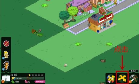 1、进入辛普森一家游戏官方版,在建造界面,选择右下角的移动图标,