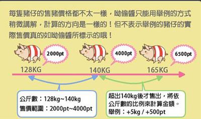 2、而针对出货的问题,系统自动设定为只有大于128kg的小猪才能进行售卖,毕竟小猪养成不易,体积太小卖了不划算,大家可以参考一下这个售卖价格表,体积越大,价格越贵