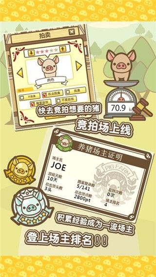 4、多种游戏设置,猪猪狩猎场增加了游戏趣味性,还有世界猪场竞争排名,看看谁家的猪更多更值钱。