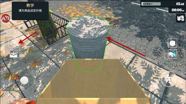 2、货物下单之后就会立马送达到超市门口,我们对准货物,然后点击左侧的按钮拾取。