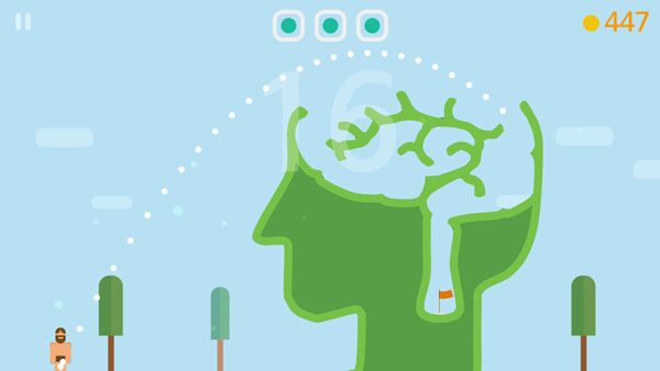 想感受一下在孤岛上击球,一人,一杆的感觉吗?那么不妨来试试孤岛宁静游戏,这是一款抛物线高尔夫击球游戏。游戏背景讲述的是一个在空无一人的孤岛上求生的人打起高尔夫自娱自乐,在这里你只需像玩愤怒的小鸟一样,拖拽调整高尔夫飞行的曲线,保证球已经瞄准可以顺利飞进洞中,然后撒手看着球在空中划出一道美丽的弧线。在调整弧线的过程中可以通过手指滑到屏幕边缘的方式取消。游戏默认使用虚线来引导球的行进路线,虚线间点的距离代表击球的力度,玩家可以通过这个判断球的飞到草地后大致反弹的距离。同时孤岛宁静游戏关卡场景并不是固定的,玩家每次重来后遇到的关卡都是随机,每次游戏玩家有三次失败的机会,另外一杆进洞也可以回复一次。