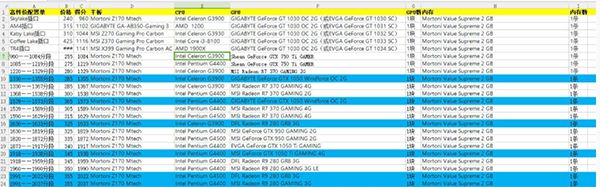2、蓝色标记的是同价位的备选方案,因为分段跨度小,除非扫到便宜的二手或者有个别散件时候出货用,不建议囤货。