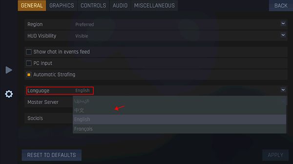 3、选择language按钮,然后选择中文即可设置语言了