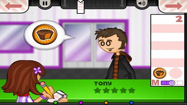 4、你要帮助管理老爹的一家冰淇淋店哦,要做让客人满意的冰淇淋才能赚到钱哦!