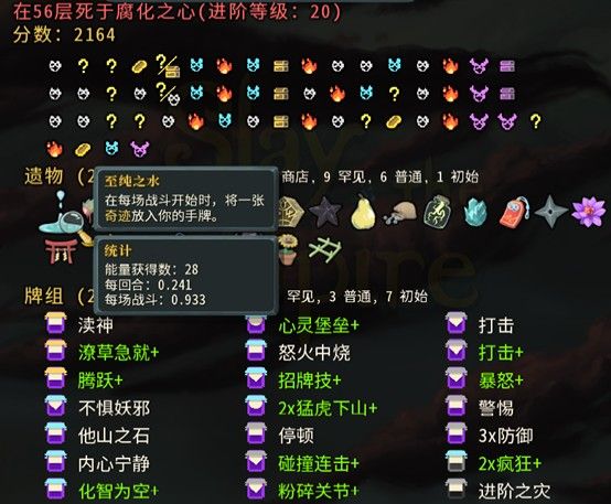 引入 200+ 种遗物,提供永久被动能力(如开局护甲、额外抽牌),部分遗物可改变出牌逻辑。