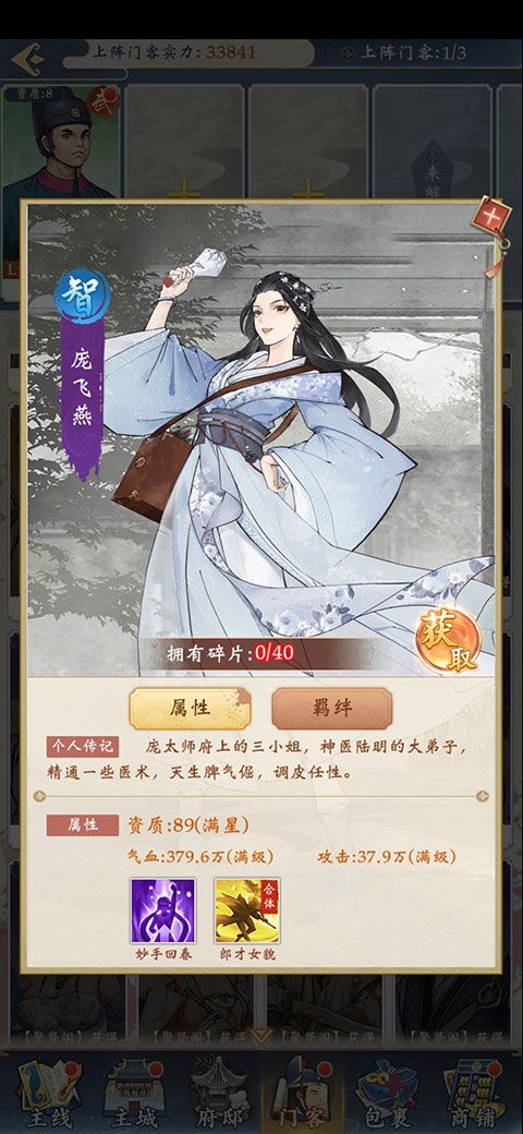 正常的橙色门客里,可以围绕府尹包拯去构建搭配上阵。在聚贤阁中兑换的门客,也都互相有羁绊。
