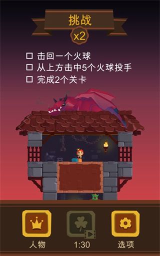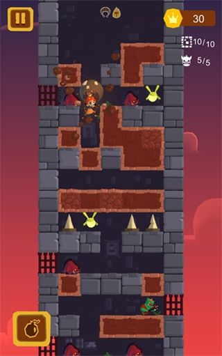 1、游戏中我们是一个被困在塔楼的少女,楼顶有一只恶龙匍匐着睡觉,我们必须要逃脱这个塔楼,只能向下打碎砖块来逃离,但是一旦开始逃亡,就会吵醒沉睡的恶龙,虽然这依旧很危险,但是为了自由,我们还是要全力一搏。
