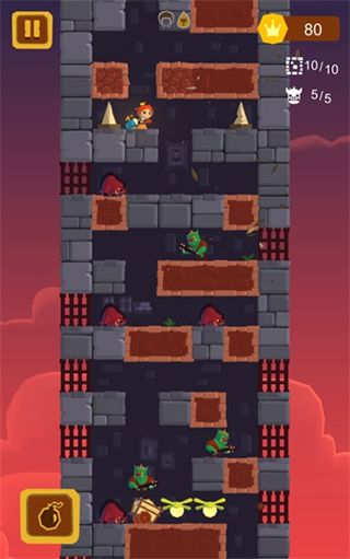 站上塔楼官方正版是一款动作闯关游戏,游戏的背景一个王子小心翼翼爬上塔楼的顶层,想要解救被困的公主,可是很不幸王子被巨龙打败了,主角不再是拯救公主的骑士,而是接过骑士战锤的公主,玩家化身公主去击败怪兽,登上最高的塔楼。游戏的操作并不复杂,玩家只需要不断的向上探索,但是在过程中会遇见各种随机事件或者阻碍,玩家需要灵活的控制方向,整个挑战关卡共有12层,每一层的难度都不相同,玩家需要在游戏中收集不同的道具,除此之外玩家还可以在游戏中收集元素,选择不同的主角,展开刺激的冒险之旅。