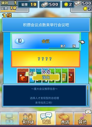 如果点子数量足够的话那就多去制作,大家可以从里面获得很不错的点子哦,这都有助于后期游戏的研发。如果点数不够的话,可与进行开发或是使用道具,会议点数就会增加哦。