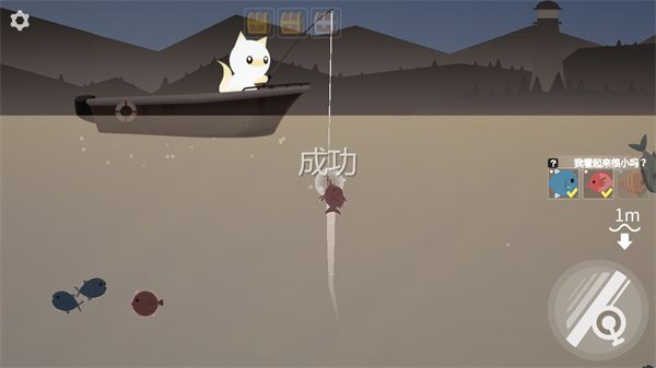 4、成功钓到鱼后,再次点击原先的"投掷"按钮,收回鱼线,得到鱼类。