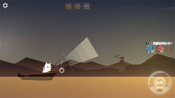 3、点击"投掷",甩出鱼钩,同时通过长按"投掷"的时长控制甩出钩的力度。
