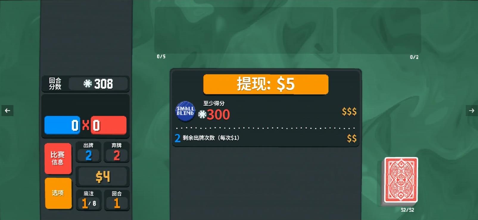 八号球:每张8点牌有1/4概率得分时给予塔罗牌(原需打出两张8点牌)。