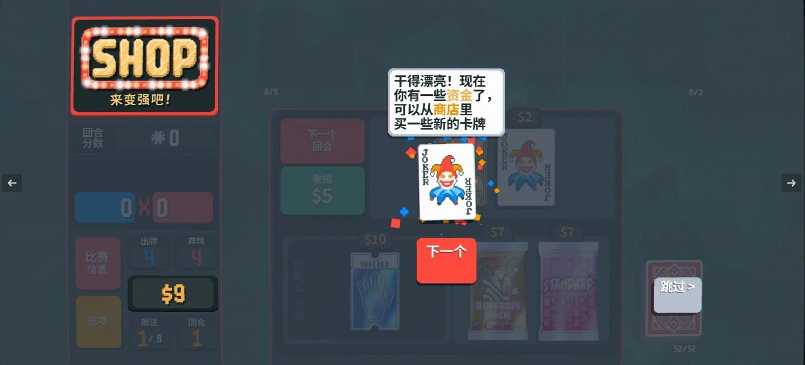 8、小丑牌优惠券标签可以在下一家商店(不是一层),增加一张额外的可购买的优惠券,不买就没了,所以最好有20块全买,再选择这个标签。