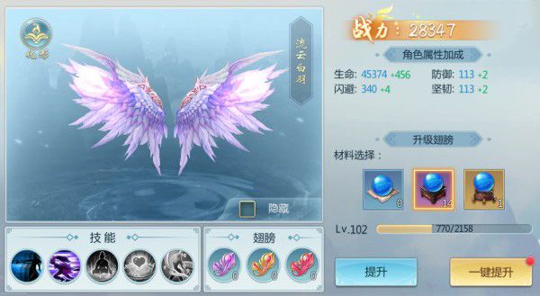 上仙们可以使用翅膀精华来升级翅膀,提高自身的生存能力,翅膀等级达到91,191,291,341级时还能解锁强力的辅组技能,帮助上仙们更轻松地战胜对手。