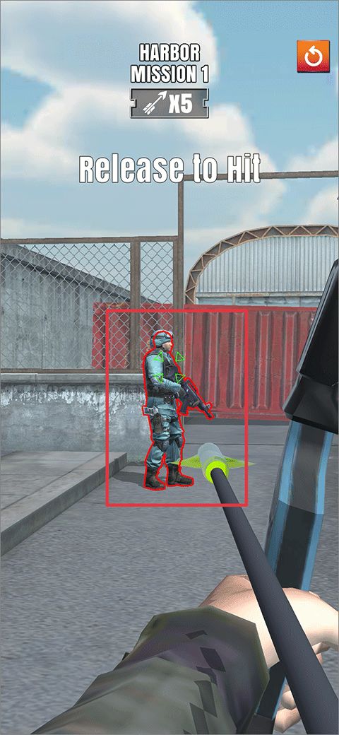 2、在游戏中,玩家通过按住屏幕即可操控角色瞄准敌人,待准心标准敌人后松手发射箭