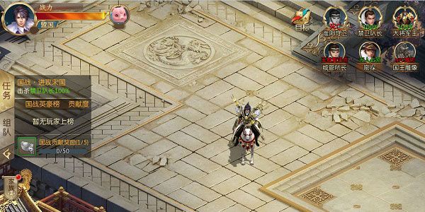 4、下水道里的"密探"和太庙入口的"国王雕像"两个NPC,分别占领"密探"和"国王雕像"的一方将分别获得防御和攻击的加成。因为禁卫队长的存活可以为大将军王提供强大的减伤效果,所以进攻方可以在占领城管所、密探和斥候后先进攻禁卫队长。击杀禁卫队长后进攻大将军王,进攻方在国战时间内击杀大将军王取得国战胜利。