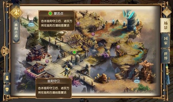 2、淮阳守卫是国战的第一个争夺点,击杀淮阳守卫后,进攻方将在淮阳古道复活点复活。