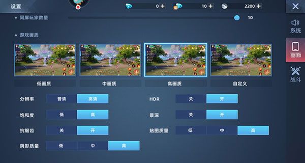 2、游戏画质这里玩家根据手机配置设置,手机配置越好可以设置成高品质;