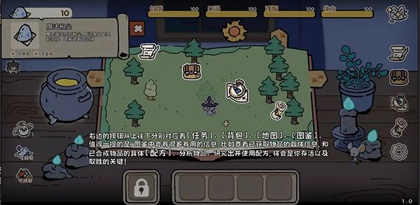 物品的采集、使用与合成大概说完了,那——我们要如何找到"女巫"呢?待在原地肯定是找不到"女巫"的,小猫咪,走动起来!游戏中,玩家需要长按童话书本的上、下、左、右四个书签进行旅行。如果书本上缺失了书签,可能是被河流、沟壑挡住了道路,需要绕绕远路。需要注意的是,黑森林里的地图每次都是随机的。在游玩过程中,多多点击右侧的地图(指南针的小图标!)来给自己定位,说不定能更快到达自己想去的地方