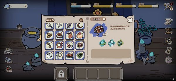不过要留意的是,坩埚的合成虽然能够变废为宝,也能够让珍贵的物资瞬间消失掉。如果你对合成一筹莫展的时候,不妨点击屏幕右边的"图鉴"按钮(第五个,那个小卷轴!)。既能够看到已合成物品的公式,也能够在物品明细中看到物品合成的逻辑。多多观察,找到正确的配方吧!