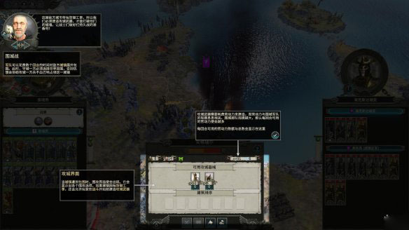 而在围攻面板左上角会显示出被围攻城镇守军将会开始遭受损耗伤亡的时间。右侧的沙漏图标则是守军最终屈服的时间。也就是说,沙漏的回合数为0后,玩家就可兵不血刃的夺下城池。