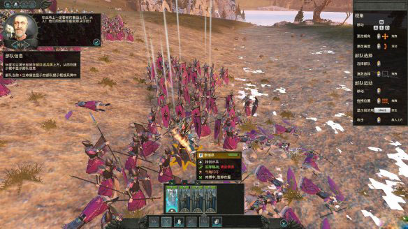 当你在战略地图上选择一支军队,并且右击鼠标行进到敌对军队身上时,如果对方在行程之内,就会接近并且进入战术部署界面。在这个界面内,你能够确认己方的军队状态以及战旗、敌人的军队状态和领主,最重要的是敌方是否有援军。