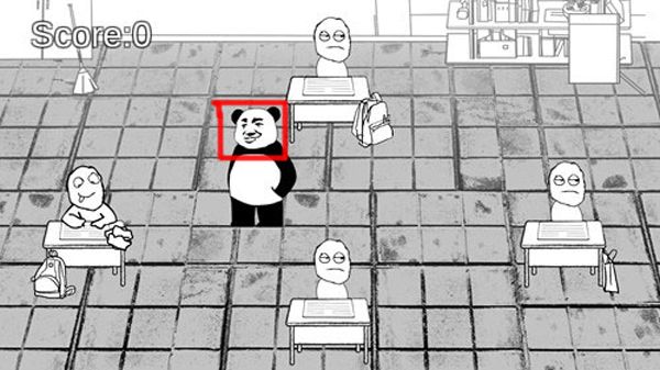 当老师的表情变成下图这样,半张着嘴的时候,说明他已经发现纸条了,我们需要快速立马传递纸条。在传递纸条的时候也有个小技巧,老师明显是站在左侧学生和2号学生之间的连接线上,所以我们要点击1号学生或者3号学生来进行传纸条。