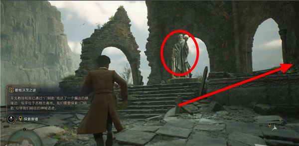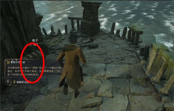 剧情:菲戈教授和主角已通过"门钥匙"抵达了一个偏远的悬崖边,似乎位于苏格兰高地。我们需要探索"门钥匙"引导两人前往的神秘遗迹。