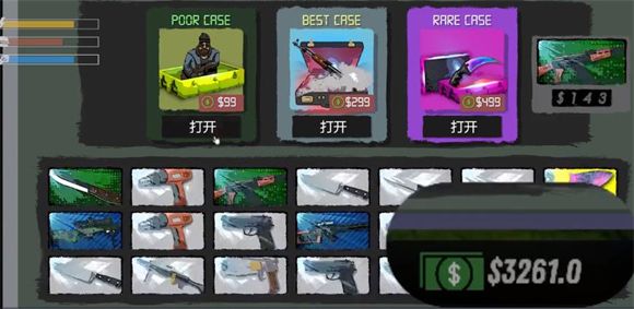 3、在前期可以先不着急买机器和设备,可以点击skin case来解锁皮肤换钱,只点99的,点个几分钟就能赚几千,运气好可以赚的更多,这样就有更多的启动资金来建设网吧。