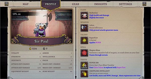 5、继承人信息依次为职业、武器、特殊技、法术以及特性。职业下方会有血量和魔法值的讯息,比如骑士一般血量较高,法师血量则比较低,但有非常充裕的魔法值。武器影响着继承人的普攻方式。特殊技则能提供一些辅助效果,比如骑士的盾牌格挡可以大大减少受到的攻击伤害;弓箭手的常春藤平台,则可以凭空造出一个平台用来站立。至于法师则会随机分配,比如风墙、火球等等。