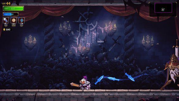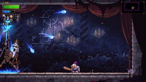 3、中间则是这一轮游戏可供选择的三名继承人,继承人有不同的职业比如弓箭手、法师、骑士等等。而继承人下方则会显示游戏中的金币加成,金币加成越高就意味着继承人会带着一些提高游戏难度的特性比如说画面颠倒、1HP、血量不显示等等...