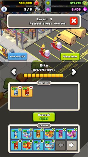 前期没必要追求扩建,额外买2-3个货架,到10级雇50一天的员工,让他收银,自己手动补货即可