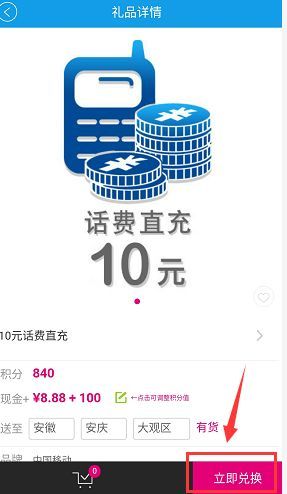 1、兑换10元话费需要840积分,编辑短信内容 HF10 或 DH376570 发送到 10658999,即可短信兑换;