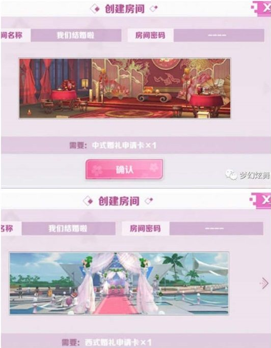 婚礼分为中式、西式两种不同风格的形式,需要消耗专属的仪式卡举办哦~