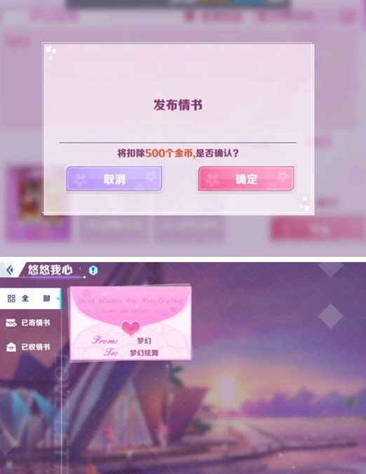 分为全部、已寄情书和已收情书三栏。全部栏里显示全服所有情书;已寄情书和已收情书里显示自己寄出和收到的情书。可以查看别人发布的情书,也可以给情书点赞或评论哦!