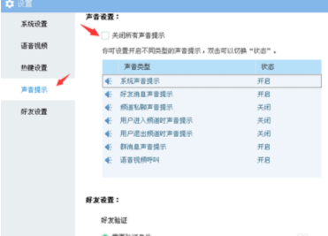 还有,我们在系统设置面板上点击“声音提示”选项,并在声音提示选项查看“关闭所有声音提示”这个选项是否被√选,如果有被√请点击取消。