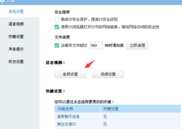 进入到语音视频选项窗口后,这里我们点击右侧窗口中的“音频设置”选项按钮,并在打开来的音频设置窗口中,我们把麦克风及扬声器都调节到*大,并点击√选音质设置选项下的三个选项,最后点击确定即可。