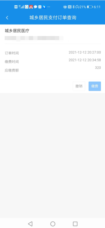 如果已经缴费成功,显示缴费时间、应缴费额。