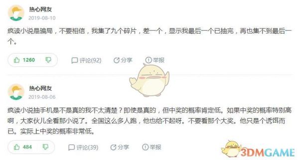 如果仅仅是抱着中奖兑手机来的,那么并不建议来,如果是喜欢在这里读小说的,那么还是可以顺便刷刷碎片的!