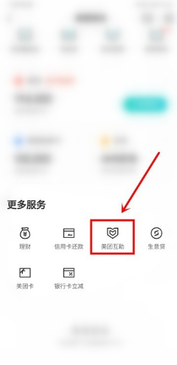 此时会弹出【美团钱包】页面,之后下拉页面到底部后在【更多服务】栏中点击【美团互助】功能。