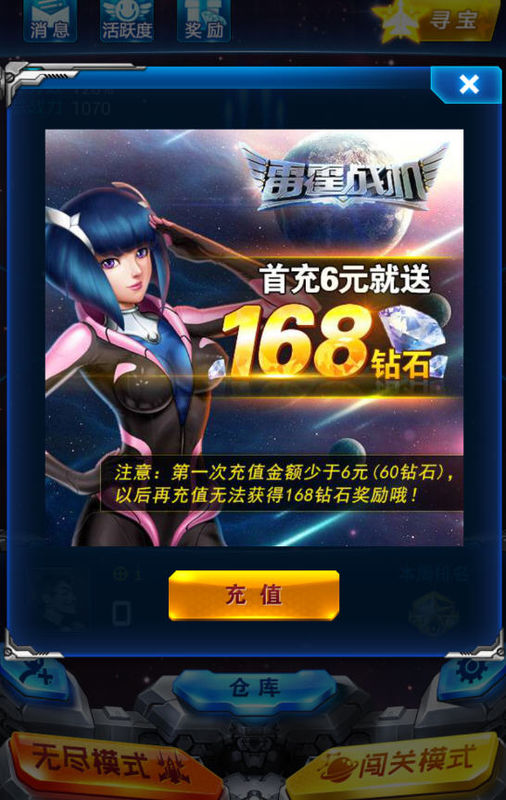 安卓手机充实方法相对简单:用户只需要进入《雷霆战机》内,点击钻石充值,