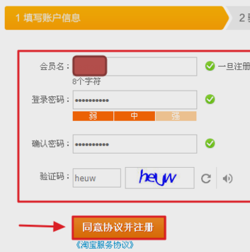 第二步:在免费注册页面,输入账户用户名、密码和验证码信息,然后点击“同意协议并注册”